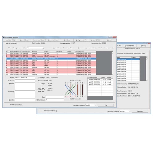 KURTH KE7100以太网性能测试仪的功能设计聚焦实用性和便捷性,核心功能覆盖网络测试的主要场景。线缆测试功能不仅能快速检测连通性,还能精准定位开路、短路等故障点,屏幕显示的接线图可直观呈现线对连接状态,串绕、反接等错误一目了然,无需技术人员具备复杂的网络知识即可解读。