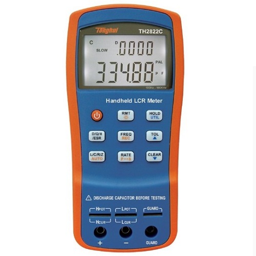TH2822C手持式LCR数字电桥综合测试仪采用超低功耗设计和高密度SMD装配工艺,主副参数同时显示的带背光LCD显示器,清新炫丽的一次成型双色外壳,操作功能简洁明了,测试信号频率高达100kHz,TH2822C手持式LCR数字电桥综合测试仪主参数40000字读数及损耗因子0.0001的分辨率,在任何场合可长时间实现对无源元件进行精确而便捷的测量。