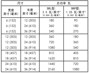 SRL型(*): 2.5 瓦/英寸 2 (.004 瓦/毫米 2 )