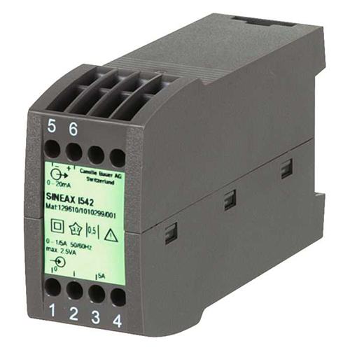 SINEAX I542交流电流传感器,测量变换器,正弦交流变换器,无需辅助能量连接,用于测量直流或直流信号与交流成比例和测量值,可以显示、记录、监视测量数据,自供电,降低布线成本,功耗低,可使用较小的CT;测量输入2量程,1/5 A或1.2/6 A。精度高0.5电平,灵敏度可变,可通过电位器调节,高顶轨安装外壳,只能在室内使用!该传感器满足iec1010en 61010对电磁兼容性、电磁兼容性和安全性的重要要求,并严格按照ISO9001质量保证标准进行设计、制造和测试。