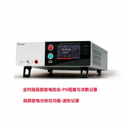 电池绝缘测试仪Chroma11210的两大独特技术及两项建议近期受到国际车用电池大厂所采纳,为确保其电池芯的安全质量。Chroma11210电池单元绝缘测试仪是一种用于准确测量电池leakage current (LC)/干电池以及其他绝缘材料的泄漏电流(LC)和绝缘电阻(IR)的仪器。除标准LC / IR测量外,11210还具有独特的功能,可检测高压绝缘测试过程中绝缘材料内部可能发生的局部放电(PD)或闪络。与传统的绝缘测试方法相比,Chroma11210能够在填充电解液之前通过PD检测电池内部状态,从而过滤掉有缺陷的产品,然后进入下一阶段的生产,从而避免了在现场可能发生的潜在危险。检查和评估电池质量的新概念。关键是局部放电分析仪功能-波形记录和全时段局部放电检出-PD程度与次数记录。