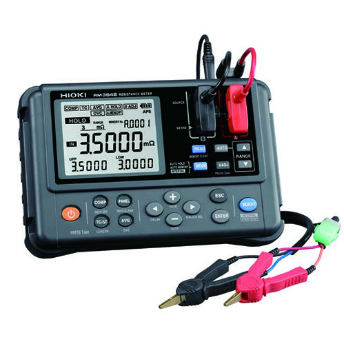 从测试原理来看,RM3548电阻计采用直流4端子法(恒流)进行电阻测量。直流4端子法又称开尔文接法,其核心原理是将电流回路与电压测量回路分开,避免了测试线电阻和接触电阻对测量结果的影响。在测量过程中,仪器向被测电阻施加恒定的直流电流(根据不同量程,电流大小不同,最大可达1A),这一电流通过两根电流线(通常称为源线)流经被测电阻;同时,另外两根电压线(通常称为Sense线)连接在被测电阻的两端,专门用于测量被测电阻两端的电压降。由于电压测量回路的输入阻抗极高,几乎没有电流流过电压线,因此电压线本身的电阻以及电压线与被测电阻之间的接触电阻对测量结果的影响可以忽略不计。仪器根据欧姆定律(R=U/I),通过测量得到的恒定电流值和被测电阻两端的电压降,计算出被测电阻的阻值,从而实现高精度的电阻测量。这种测量方法尤其适用于低电阻测量场景,能有效消除测试线和接触电阻带来的误差,确保测量结果的准确性,这也是日置RM3548电阻计能够实现0.1μΩ高分辨率测量的重要原因。